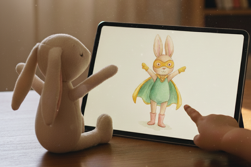 Racontez en quelques mots comment vous imaginez son doudou : aventurier, rêveur, super-héros… En un instant, il prend vie sous vos yeux.
