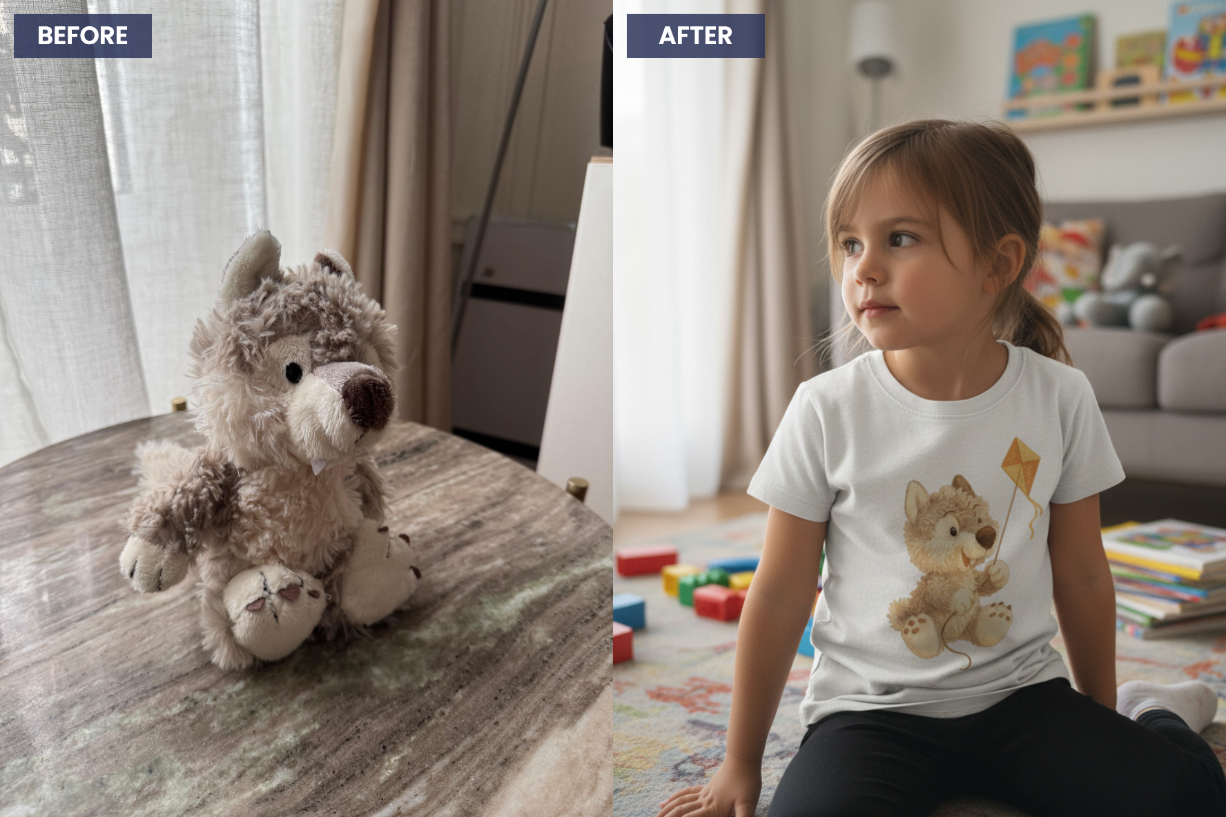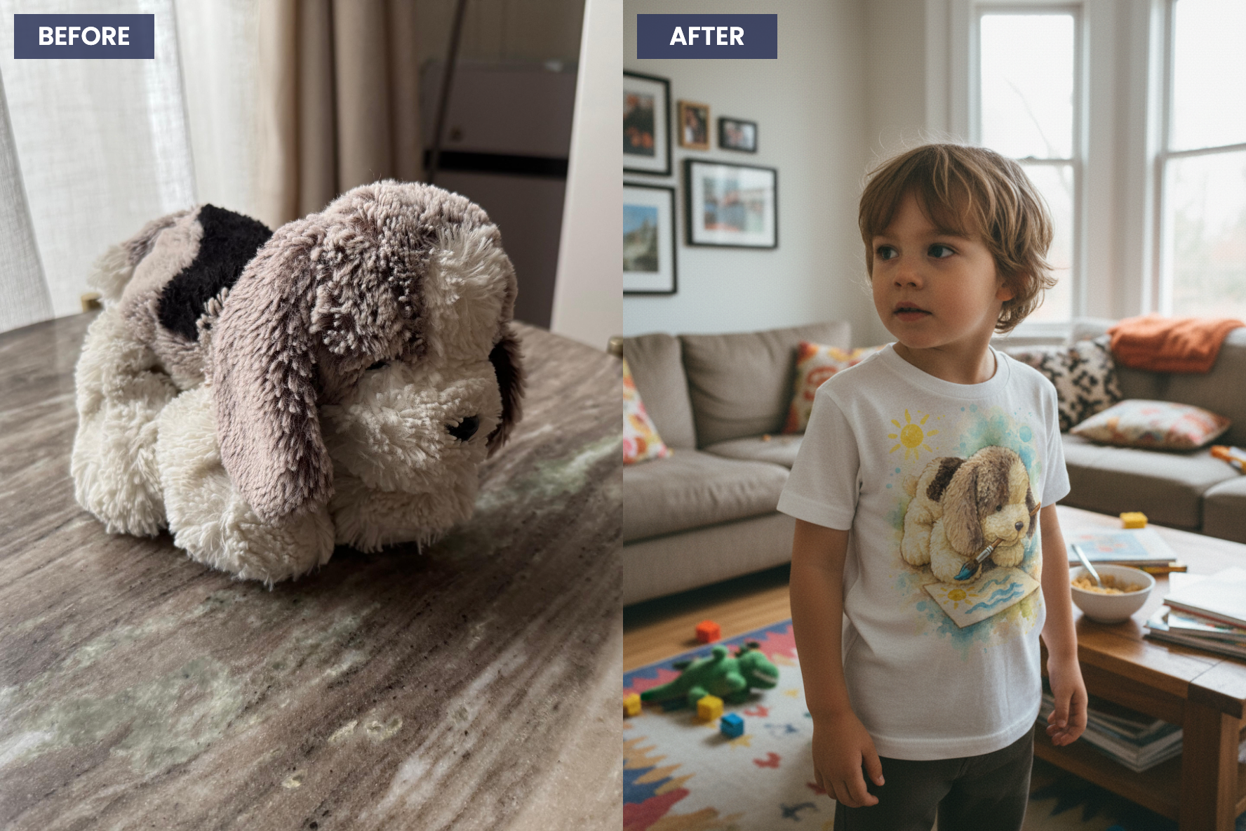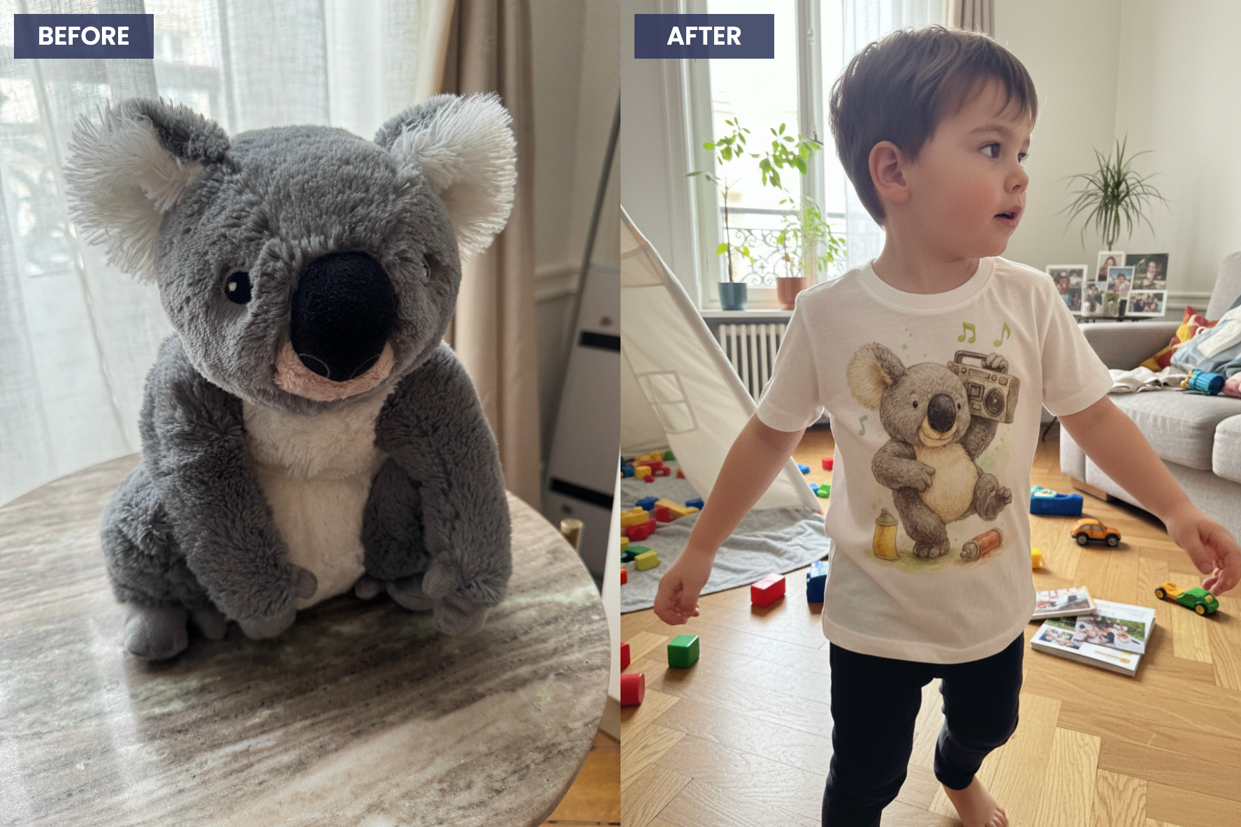 Peluche, animal, jouet préféré… Une photo suffit pour créer une pièce unique à son image.